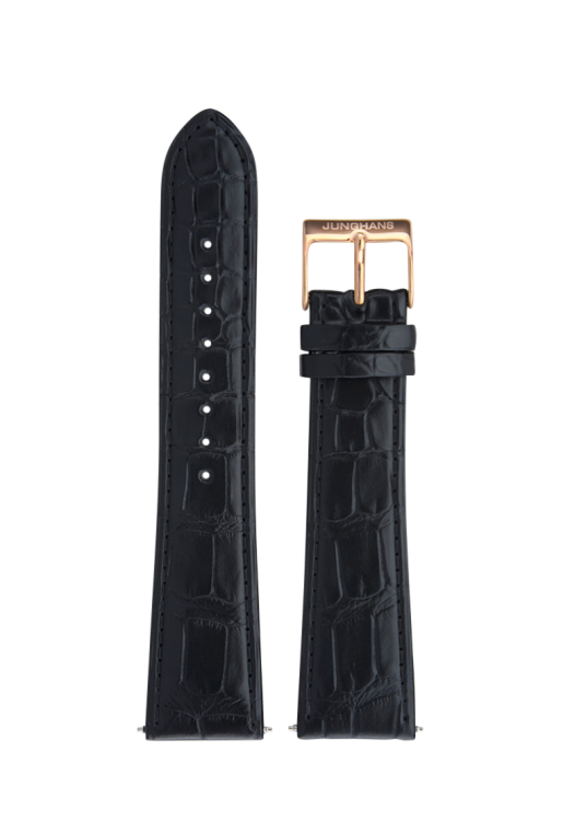 Bracelet de montre en alligator noir Junghans Meister Chronoscope 21mm n°6185