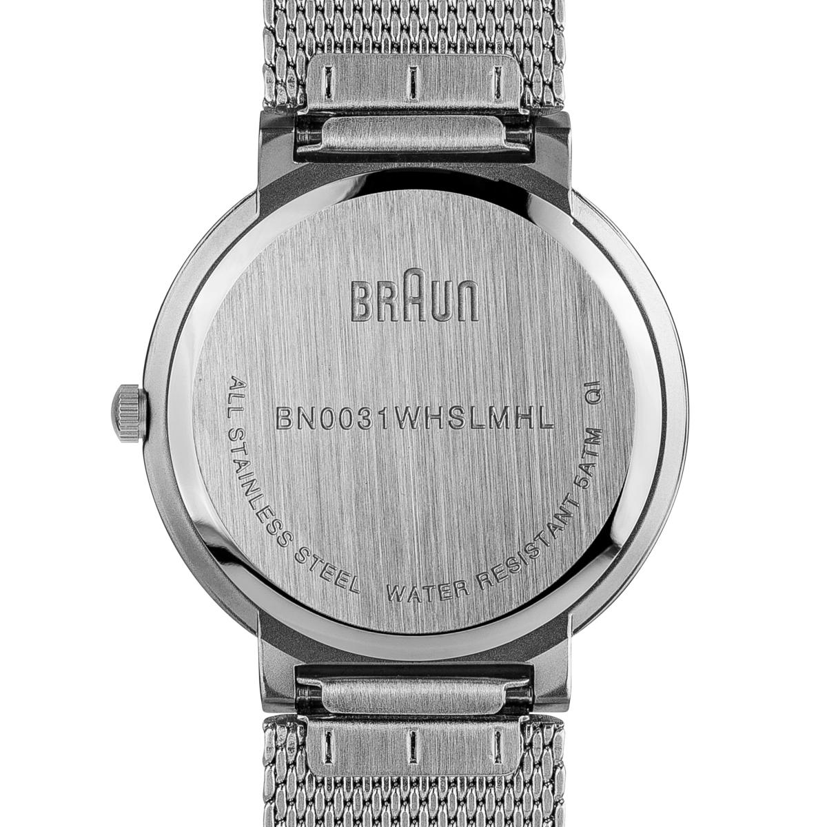 Disponible avec des bracelets en maille noirs et argentés pour les amateurs de Braun traditionnels, et avec une nouvelle sélection de bracelets en cuir aux couleurs fraîches, rose, turquoise et beige clair.