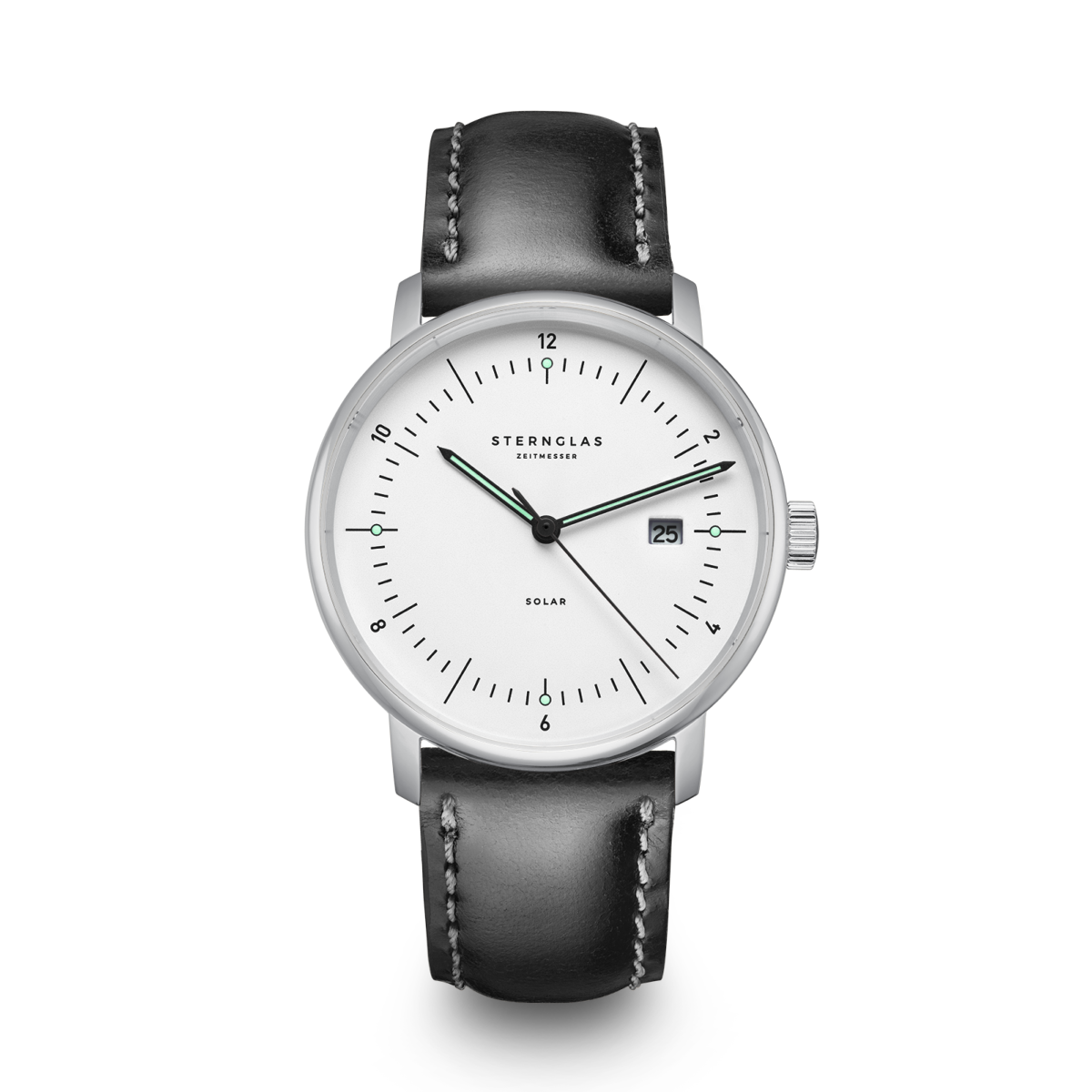 Montre NAOS Solar cadran blanc - Bracelet cuir noir S01-NS01-BR02